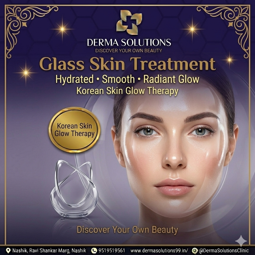 Glass Skin Treatment Glass skin treatment is a popular skincare trend inspired by Korean beauty, focused on achieving smooth, clear, and intensely hydrated skin that looks radiant and reflective like glass. This treatment enhances skin texture, boosts hydration, and improves overall glow. At Derma Solutions, advanced glass skin treatments are customized to give you a healthy, luminous, and flawless complexion. What is Glass Skin? Glass skin refers to skin that is: Smooth and poreless Deeply hydrated Even-toned and clear Naturally radiant and glowing This look is achieved through professional skin treatments combined with proper skincare. How Glass Skin Treatment Works Glass skin treatment combines advanced dermatology procedures such as: Skin hydration therapies Gentle exfoliation Skin brightening treatments Collagen-boosting procedures These work together to improve skin clarity, hydration, and glow. Benefits of Glass Skin Treatment ✔ Deep hydration and nourishment ✔ Smooth and refined skin texture ✔ Enhanced natural glow ✔ Even skin tone ✔ Healthy, radiant appearance Who Should Consider This Treatment? This treatment is suitable for individuals who: Have dull or dehydrated skin Want glowing and radiant skin Experience uneven skin tone Prefer non-invasive skin treatments Why Choose Derma Solutions in Nashik Advanced skin hydration techniques Personalized treatment plans Safe and hygienic environment Professional and experienced care Focus on natural, glowing results Book Your Consultation If you are looking for glass skin treatment, expert consultation can help you achieve smooth, glowing, and flawless skin. Book your appointment today.